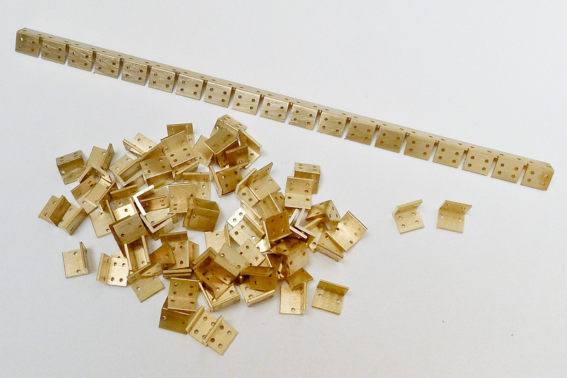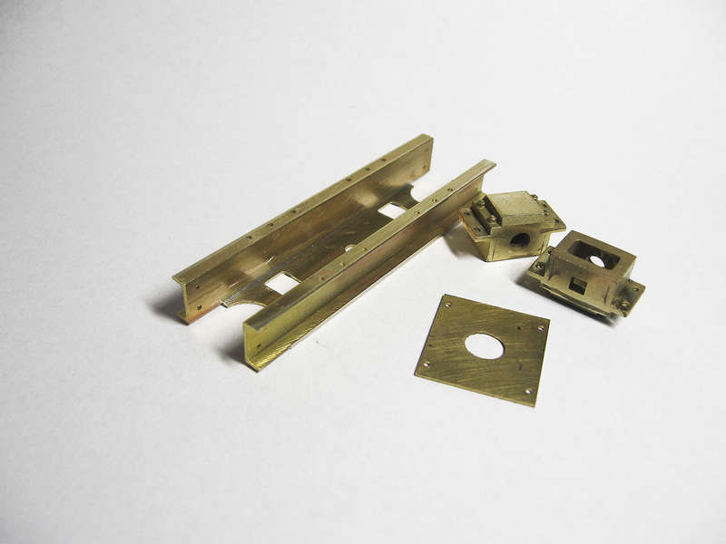, konnte es auch am Rahmen weitergehen. Der hat mittlerweile sein Bodenblech mit dem Arbeitsplatz des Bremsers erhalten. Die Tränenbleche sind Ätzteile aus 0,5 mm Blech, die Frithjof nach Zeichnung mit den benötigten Fasen und Bohrungen versehen hat. Die U-Profile greifen mit kleinen Zungen in entsprechende Aussparungen am Rahmen. Die hätte ich auch für die Tränenbleche vorsehen sollen, aber es geht auch so.