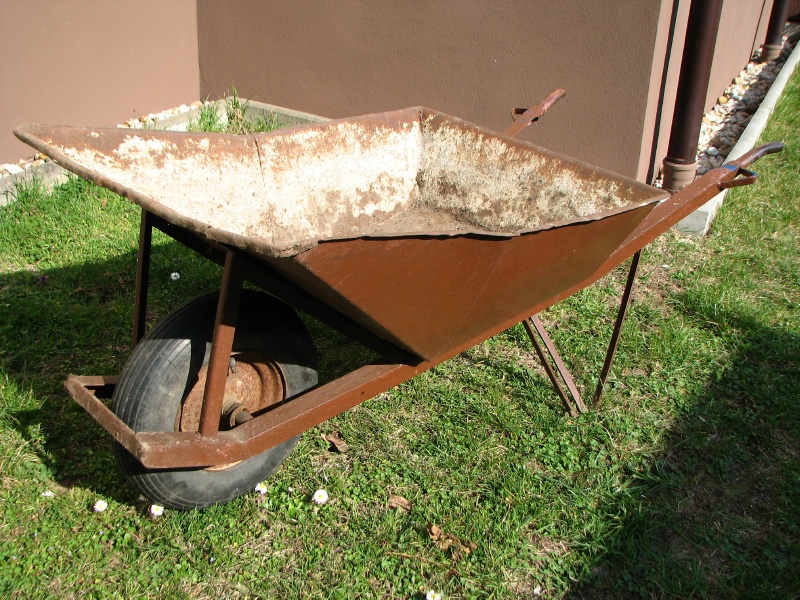 Die erste große Schubkarre war so eine wie hier. Dann fehlten Winkel und das Teil gab es(oder nicht!) im Rahmen längs als Dreiteiler mit abgekantetem Blech auf 40mm, verbunden mit einer Schraube M8. Und dann, wenn es gab, zwei Papiersäcke Zement drauf, Gummi war schon fast mehr beherschbar!