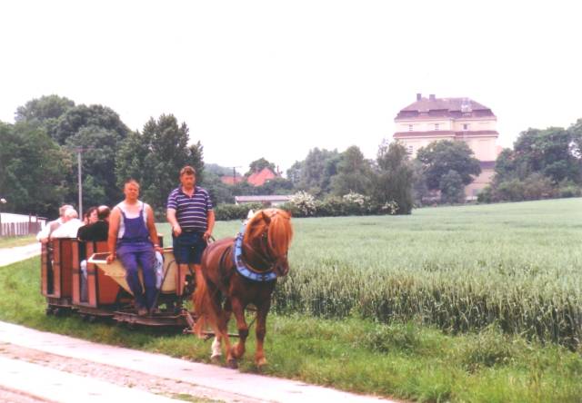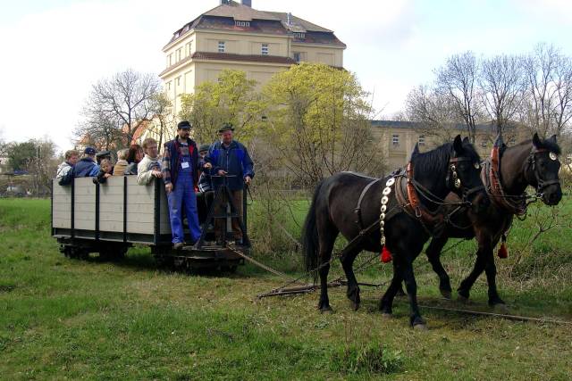 Alle sind glücklich ( Anwohner,weil Mittagsschlaf gesichert, Kutscher und Pferde, weil sinnvolle Aufgabe,Versicherung, weil 50 Euro mehr im Jahr, Besucher weil Pferde so toll sind und StrubeBahner weil Züge immer voll !!!