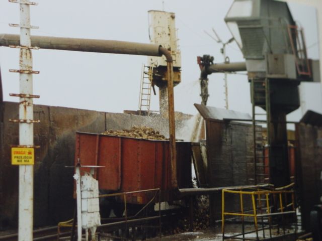 Ergänzen möchte ich die Bildergalerie deshalb um eine Aufnahme aus dem Jahr 2001, entstanden auf dem Gelände der polnischen Zuckerrfabrik Tuczno mit einer entsprechenden Abladeszenerie. Das Entlade-Prinzip müßte darauf zu erkennen sein.