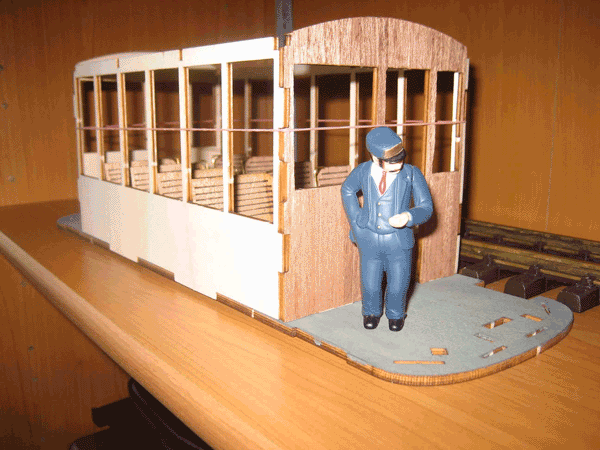 doch gefällt mir an dem Bausatz nich das die Plattform nicht ganz vorbildentsprechend ist, beim Vorbild ist diese ein wirklich eckiger Kasten, während bei dem Bausatz die Ecken abgerundet sind, trotzdem sind diese Bausätze eine wirkliche Bereicherung für die Gartenstraßenbahn, bei einem angemessenen Preis-Leistungsverhältnis.