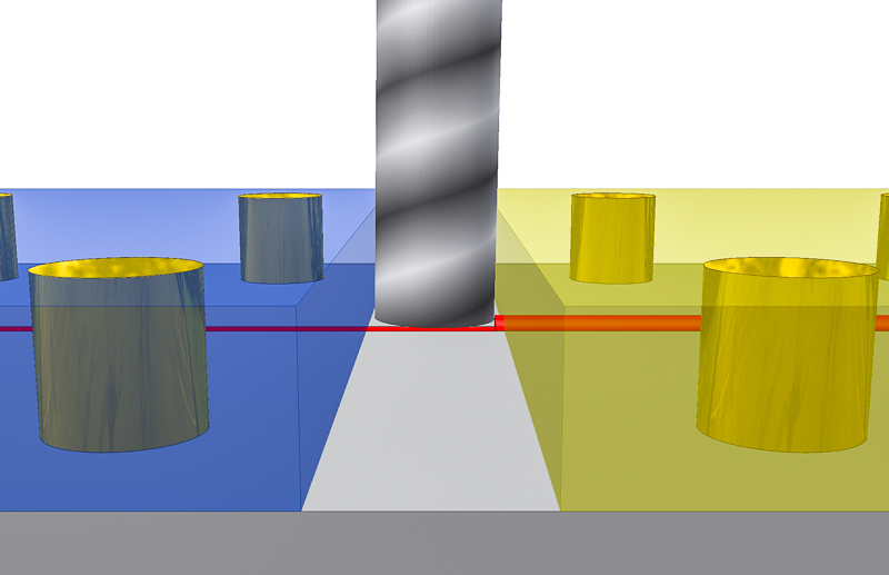Jeweils vier 2,0mm Passerstifte verbinden die Platten und halten so die Position.
