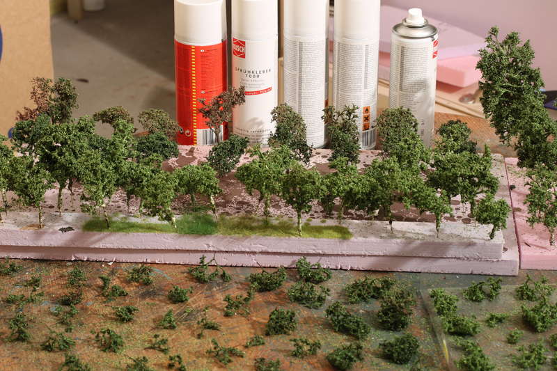 Ja, es soll nach und nach einiges mehr an Grünfutter entstehen, deshalb gleich mit einem Vorrat an Sprühkleber eingedeckt – lästig wenn die Dose leer ist und die Quelle dafür gerade keine mehr vorrätig hat …. :evil: