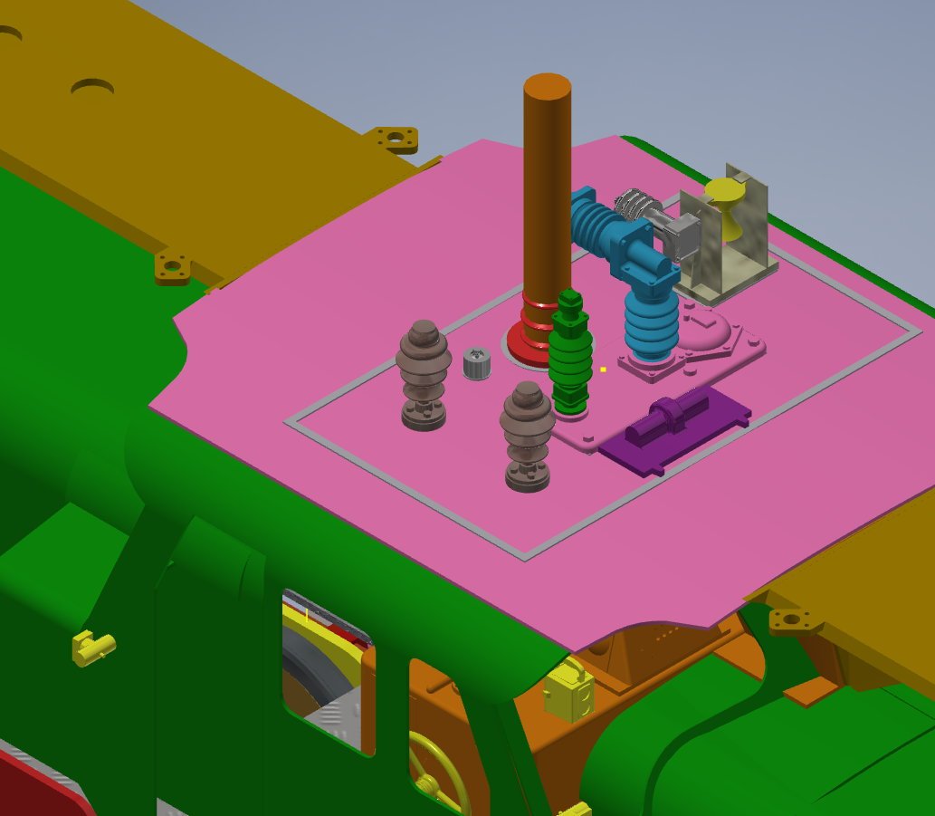 Ich habe das Rohr vergrößert, um die Stromversorgung der Stromabnehmer zum Boden der Lokomotive zu verlegen.
