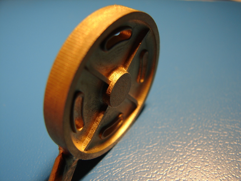 heute kam der Prototyp des Rades der OHE-Version von der Gießerei. Er wurde als Wachsmodell geplottet und zur Kontrolle und evtl. Überarbeitung in Messing gegossen.
