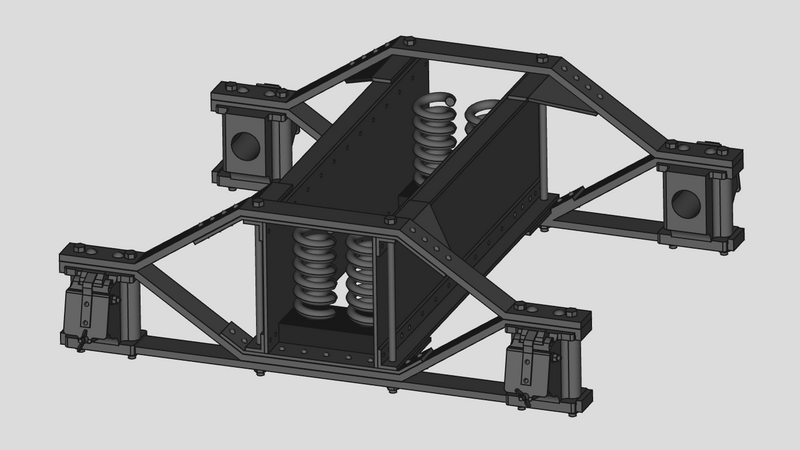 Die Schraubenfedern sind nur symbolisch wegen des Gesamteindrucks eingezeichnet. Später sollen echte Federn eingebaut werden, damit die Drehgestelle gefedert sind.