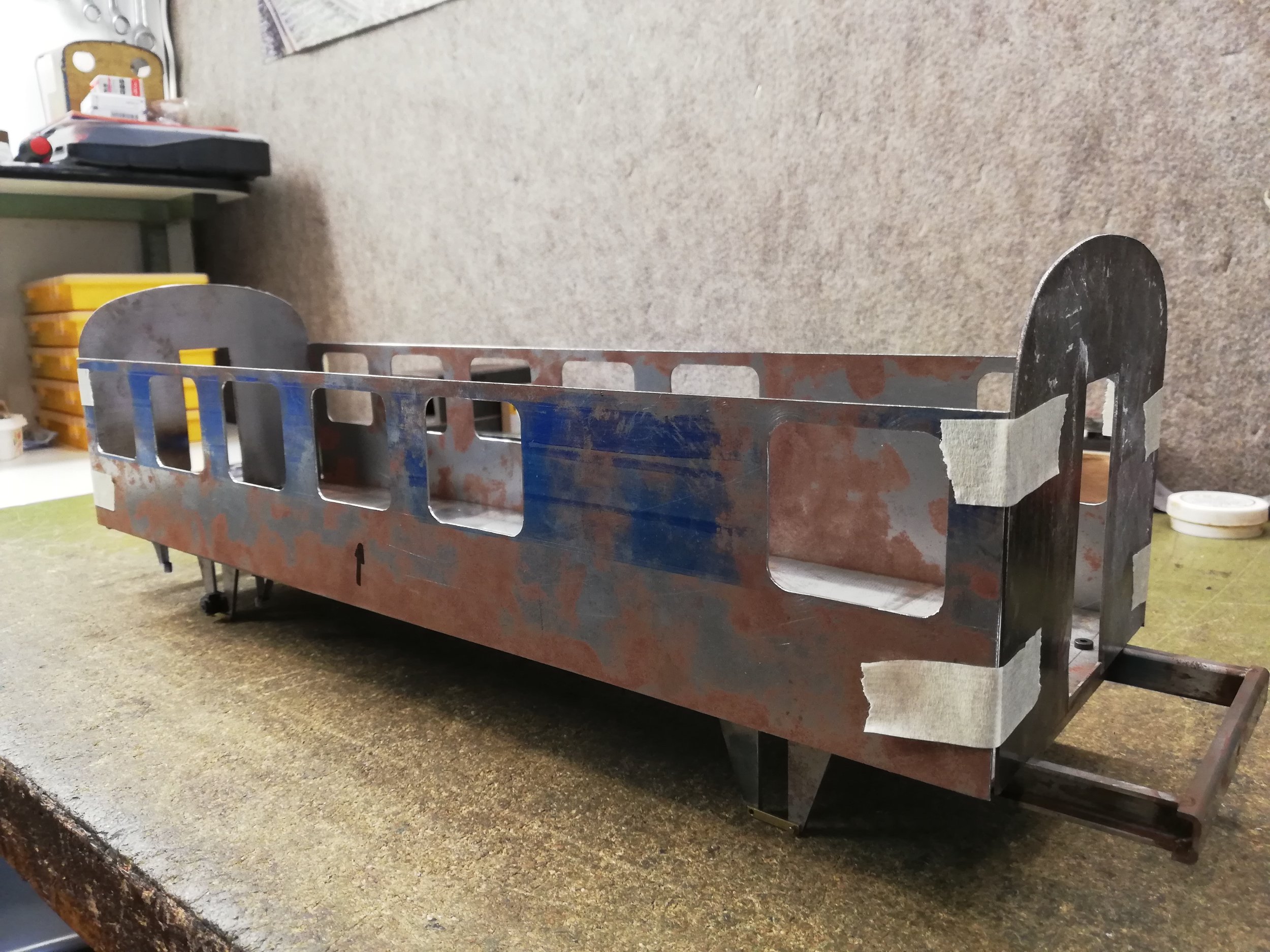 Vor wenigen Wochen wurde nun aber mit einem ersten Prototypen begonnen - dieser soll bis Dezember fertig werden. Es ist angedacht diesen Wagen meinem treuen Eisenbahnkollegen zu schenken, der mich seit meinem Einstieg in dieses Hobby mehr unterstützt als ich es mir je erträumt hätte. Im Dezember feiert besagter Freund seinen 80ten Geburtstag - sollte dieser Wagen gelingen, möchte ich ihm diesen als Zeichen meiner Dankbarkeit schenken.