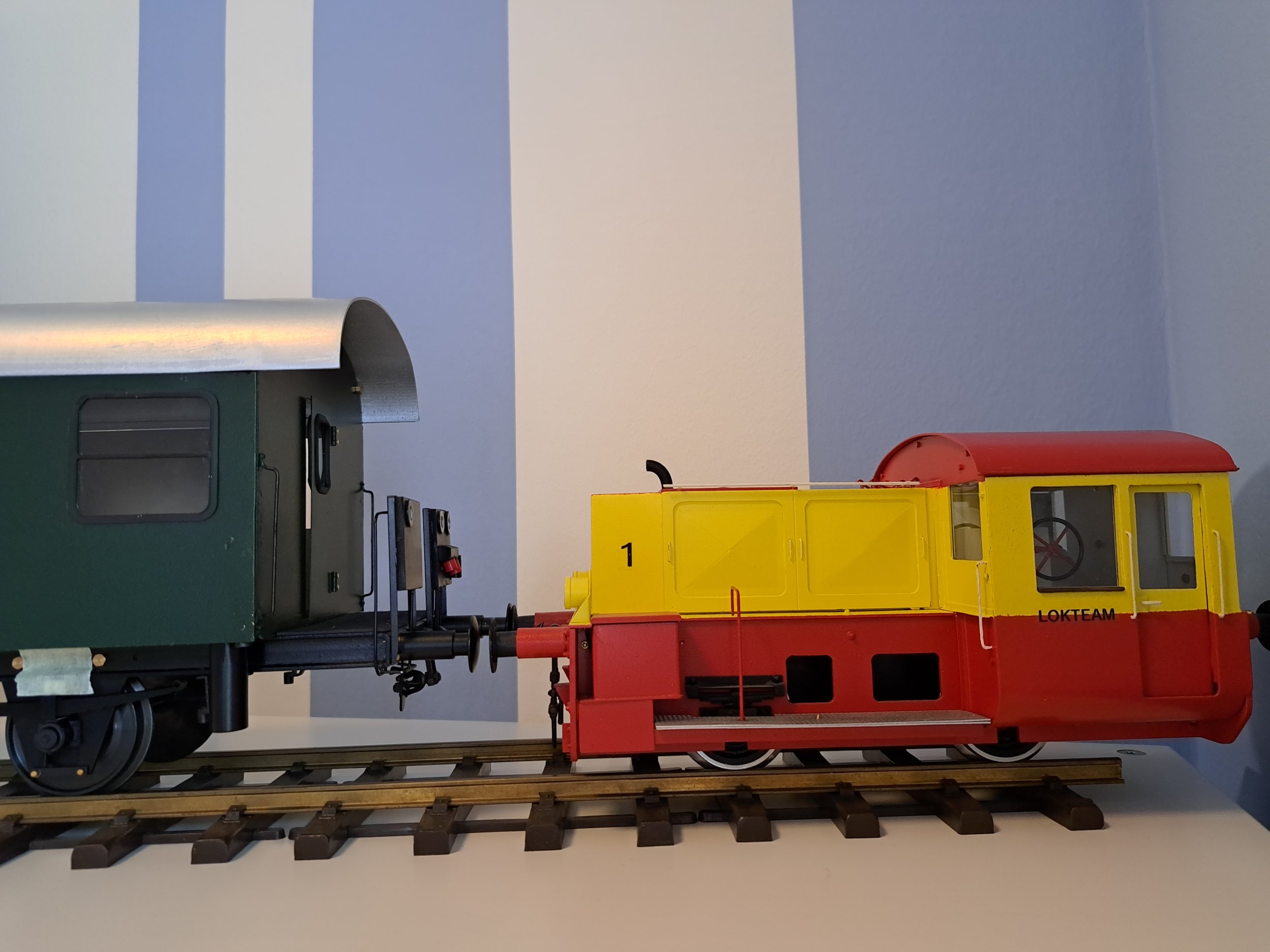 Eine dieser Loks war für mich und ist Nachbau einer Köf die in meinem ehemaligen Eisenbahnverein vorhanden war. In besagtem Verein gab es weiters auch noch einen sogenannten "Fahrverschubwagen" - ein Umbau aus den bekannten Spantenwagen und teilweise noch heute im regelmäßigen Betrieb bei den ÖBB.