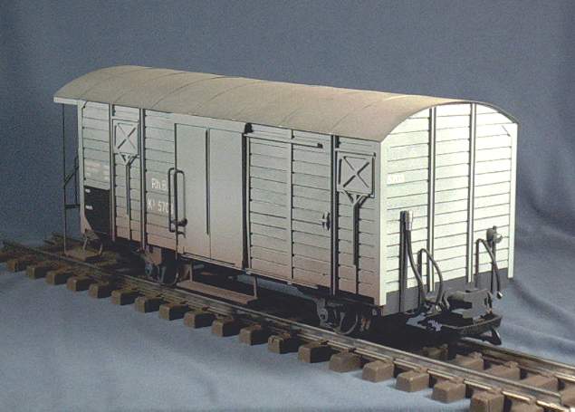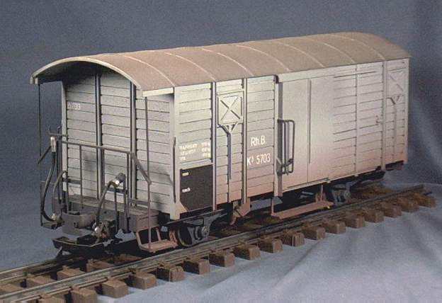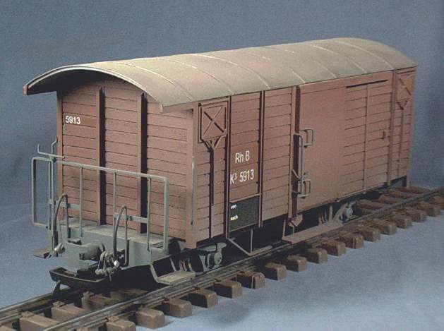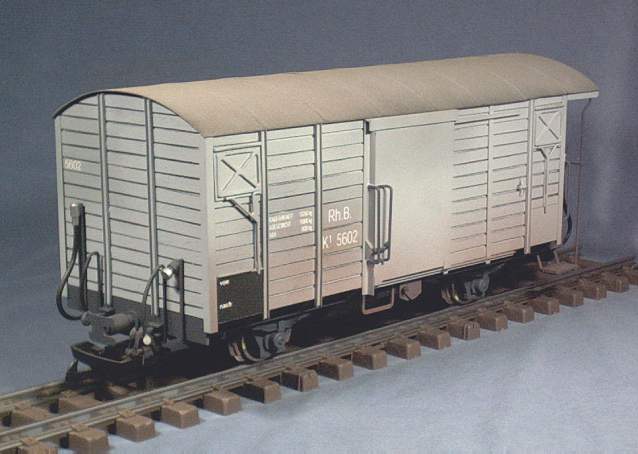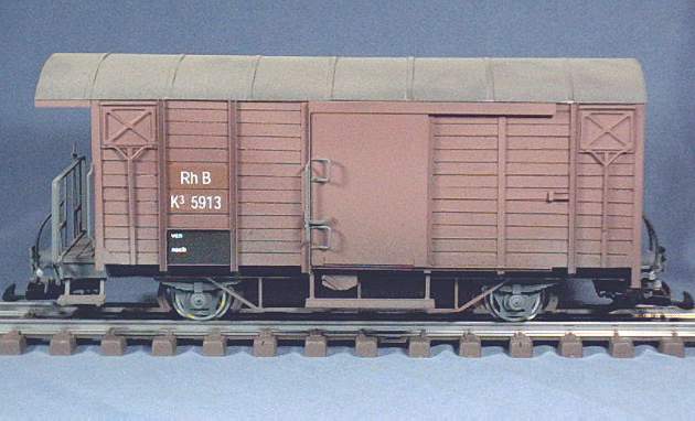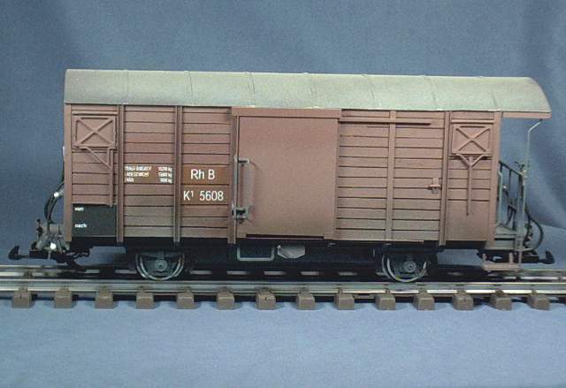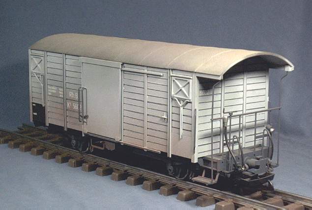 Tipp für die LPG-Zersäger: Leute, die vor einem totalen Selbstbau zurückschrecken, können den alten K1 relativ leicht aus zwei Toytrain-Güterwagen basteln. Die Tür, Lüftungsöffnung etc. passt einigermaßen, Kasten und Fahrgestell muss lediglich verlängert werden, alte Bretter verspachteln, neue Aufkleben und ein paar Blattfedern anstelle der Spiralfedern – fertig ist der Alt-K1