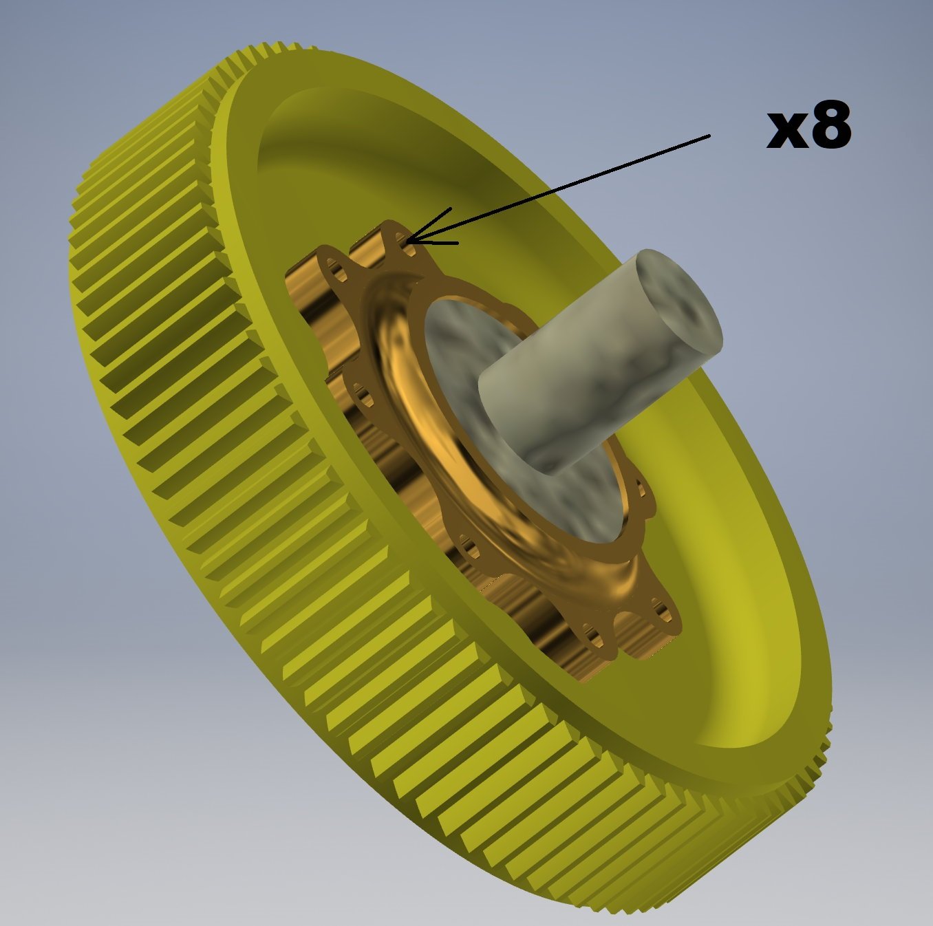 Die Löcher dienen dazu, das Ritzel mit 85 Zähnen zu halten.