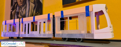 Bei den Bildern der Straßenbahn, die ich veröffentlicht habe, handelt es sich lediglich um Fotos des ersten Prototyps, einer Machbarkeitsstudie. Die Teile werden also gedruckt, geklebt und fotografiert, ohne jegliche Nachbearbeitung.