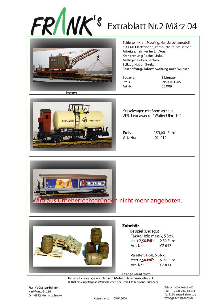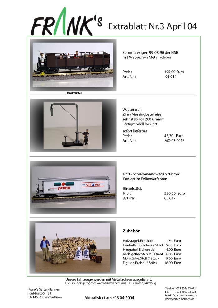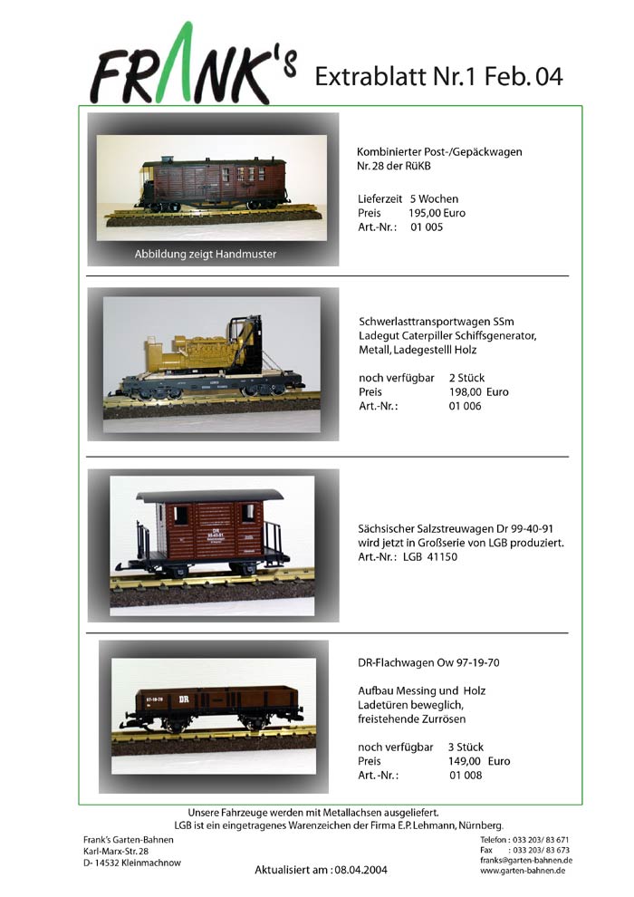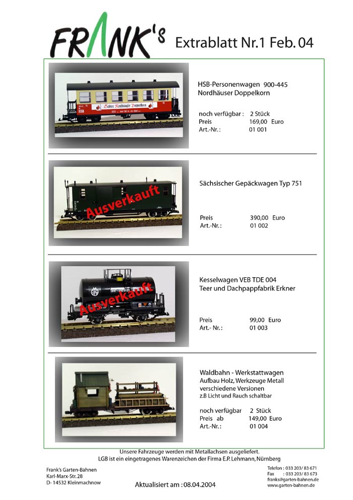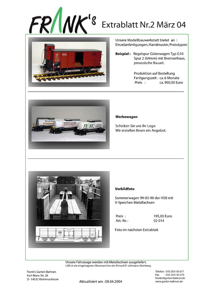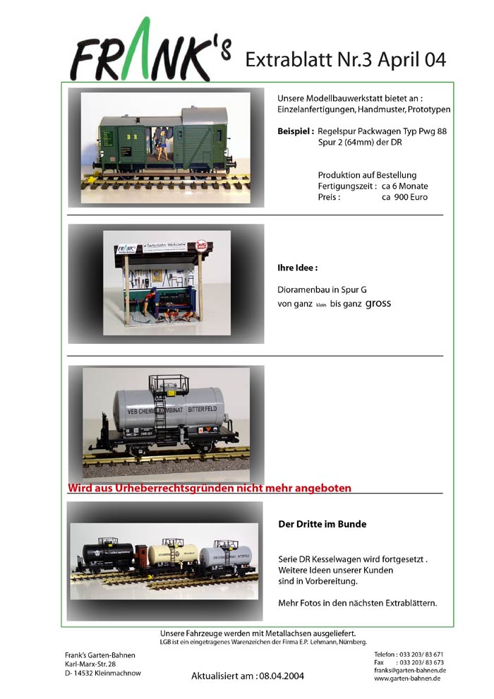 Hier die Extrablätter von Franks Garten-Bahnen von Januar bis März.