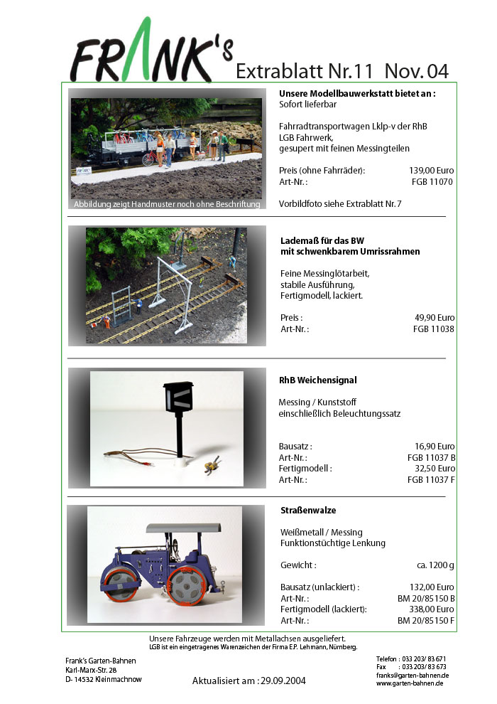 Extrablatt Nr. 11 von Franks Garten-Bahnen