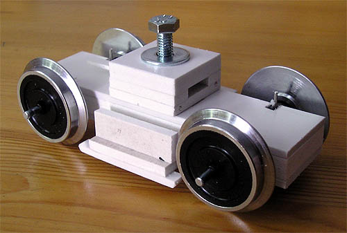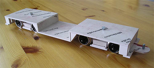 inzwischen wurde mit dem Bau des Fahrzeugs begonnen. So kann ich Euch hier nun erste Ergebnisse zeigen. Es handelt sich um die Bodenplatte des mittleren Wagenteils und um ein Drehgestell. Das Drehgestell wurde nicht exakt nachgebildet sondern eher funktionell gebaut, da es am fertigen Wagen so gut wie nicht zu sehen sein wird.