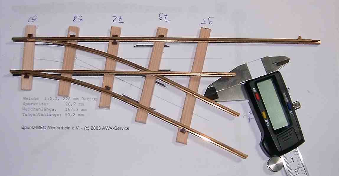 1. Versuch einer Rechtsweiche für 26,7mm Spurweite.