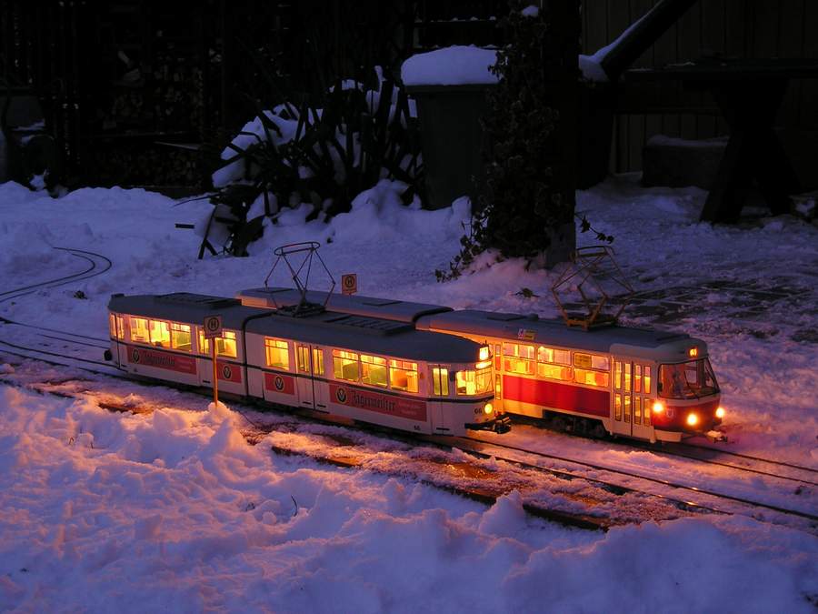 leider kann ich hier nur mit einem Bild vom "Betriebsruhe" im Garten dienen, da die Herzfelder Strassenbahn Ihren Betrieb auf Grund der starken Schneefälle in Ostbrandenburg einstellen mußte :cry: