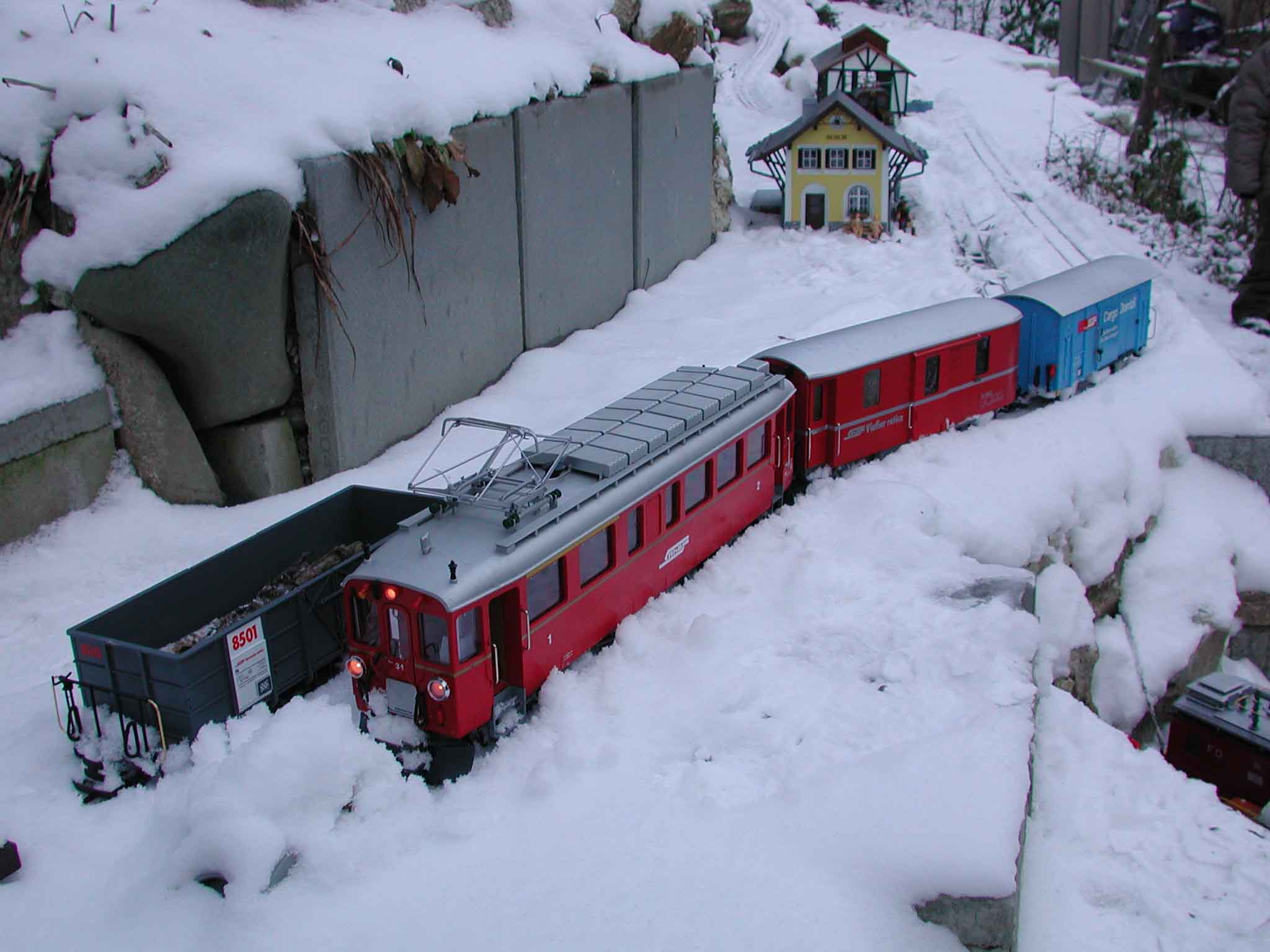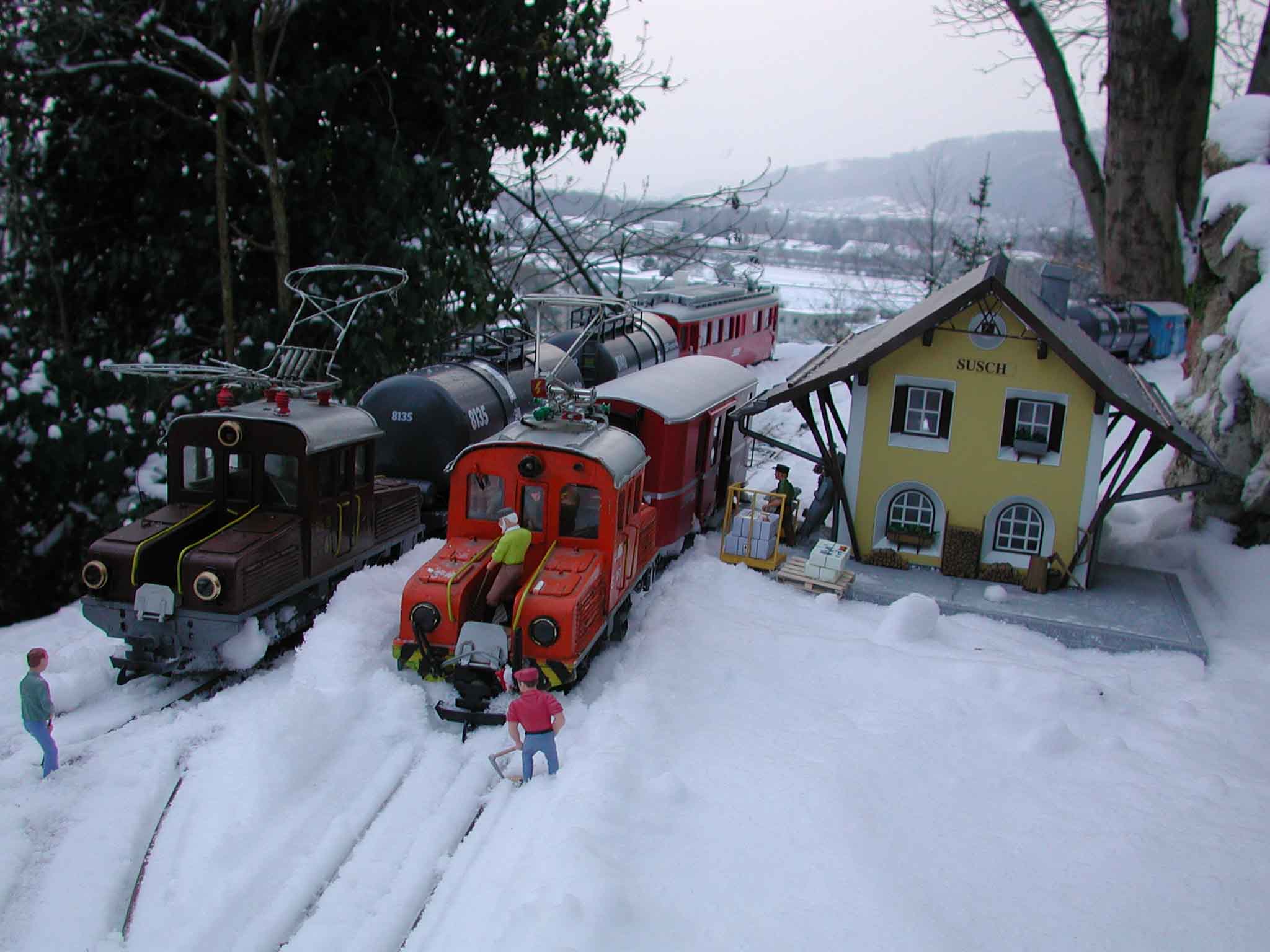 neben Dampf- und Straßenbahnen gibt es auch noch Feldbahnen im Schnee.