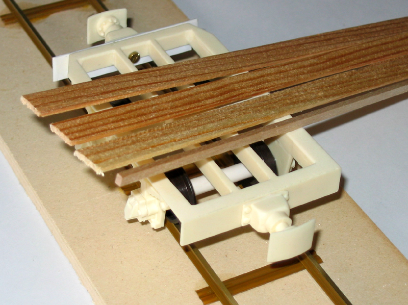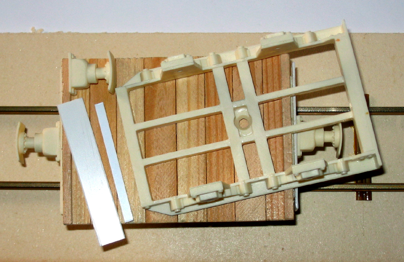 Jetzt muß ich nur noch die Achsen zusammenkleben und das Bremsgestänge nachbilden, aber auch nicht zu genau davon sieht man eh nachher nix.
