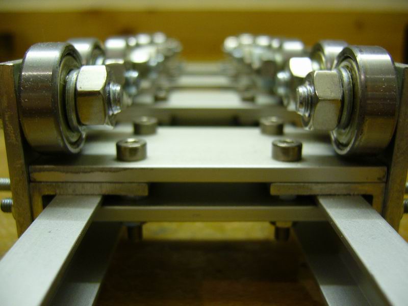 Der Rollenprüfstand ist hauptsächlich aus Alu-Resten entstanden, das einzige Problem waren die Kugellager. Diese gibt es aber bei www.pollin.de sehr günstig (50 Cent/Stück).