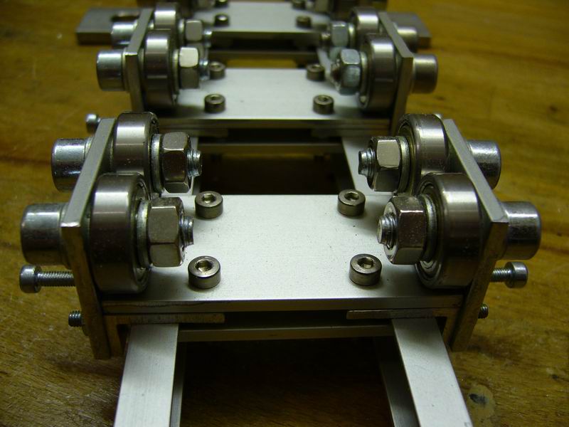 Theoretisch würde es ausreichen, die Verbinder und die Führungen der einzelnen Achslagerungen (Flachprofile 30 x 3 mm) anstatt aus Alu aus Kunststoff zu fertigen, um eine Isolierung der Räder zu erreichen.