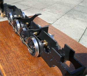 Die vielen Blattfedern sind eine "fromelei" und als Tipp für alle die eine Bauen werden. Alle Gewinde kurz nachschneiden, ist halt doch immer noch "Dreck" drin. Jetzt sieht es schon richtig nach einen schweren Lok aus. Nach ein paar Anläufen die Treibstangen und Räder alle in der Richtigen Position zu haben laufen die sie jetzt ohne zu klemmen nur durchs Eigengewicht auf den Schiene. :lol: :lol: