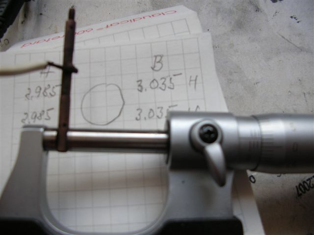 Ausgangslage waren die Messingstangen mit 2.985mm und ein Soll am Zylinder von 3.035mm. An den Bilder kann man die Werte am Messchieber ablesen.