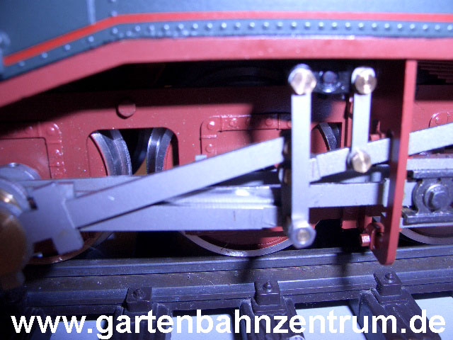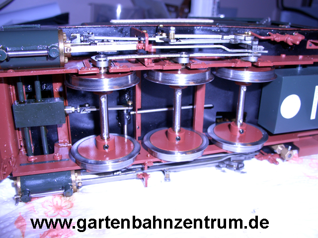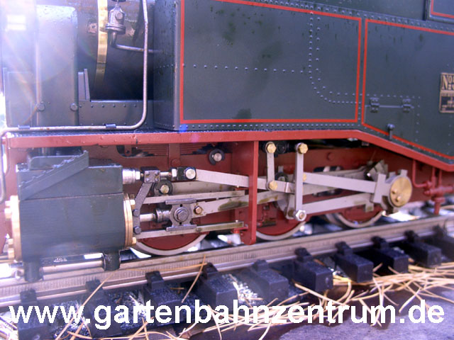 Frage dazu: Die Steuerung auf den Fotos sieht so nach Allan-Steuerung aus, aber eine richtige Umsteuerung kann ich nicht entdecken. Deshalb vermute ich, dass es nur eine Art Dummy-Allan Steuerung ist und die eigendliche Umsteuerung über Umkehr der Dampfrichtung über Umsteuerventil passiert.