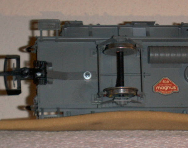 In beiden Fällen ist aber die Kupplung gefedert gelagert. Magnus macht das über ein Kunststoff-Stück (siehe Bild unten), ich nehme dazu Spiralfedern aus dem Baumarkt 6 x 30 mm. Die Spiralfeder wird einseitig am Wagenboden angeschraubt, die "Verlängerung" der Kupplung befindet sich in der Feder. Einfach mal auf´s Bild schauen. Alles klar