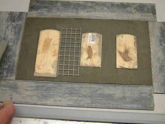 6. Darauf wird dann ein zuvor zugeschnittenes Stück Drahgeflecht gelegt und mit Schnellzement in der entsprechenden Dicke abgedeckt.